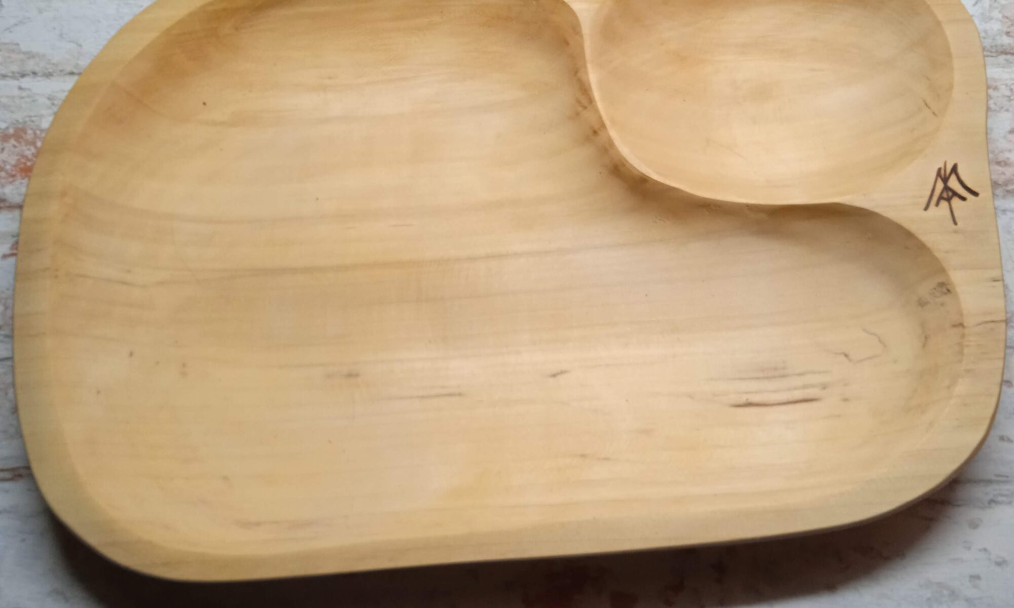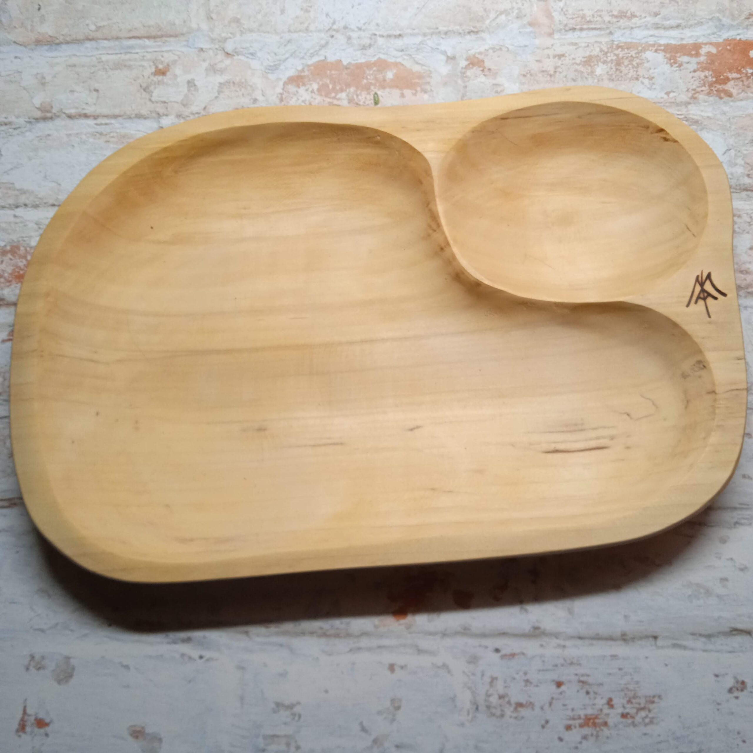 Két részre osztott tál, melyben a köret, vagy a savanyúság külön helyet kaphat. Minőségi kidolgozás, természetes felületkezelés.
